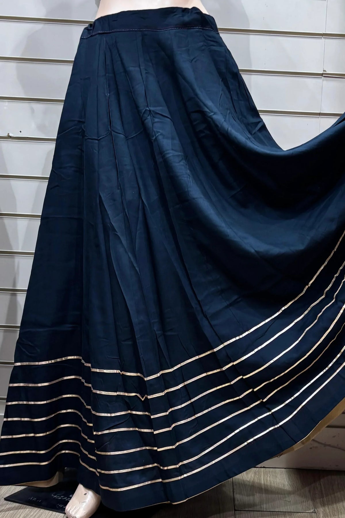 Rayon plain maxi skirt with pleats, and a drawstring waistband.